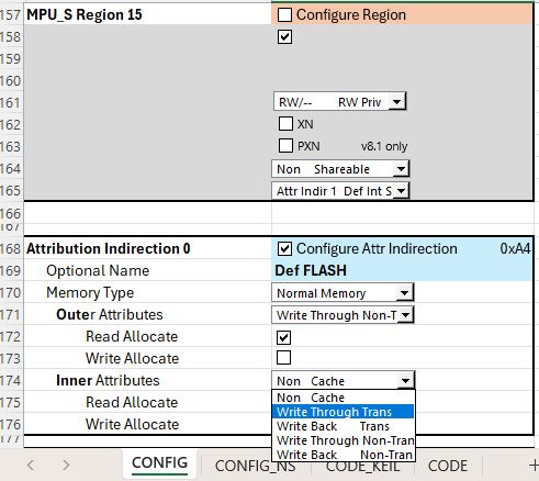 - Additional sheet CONFIG_NS for the non-secure MPU